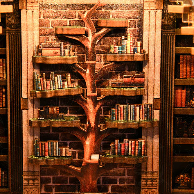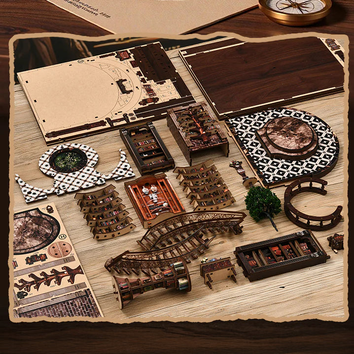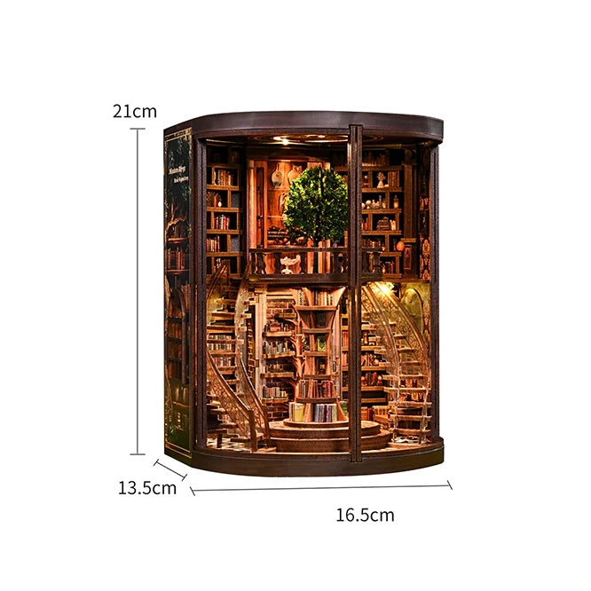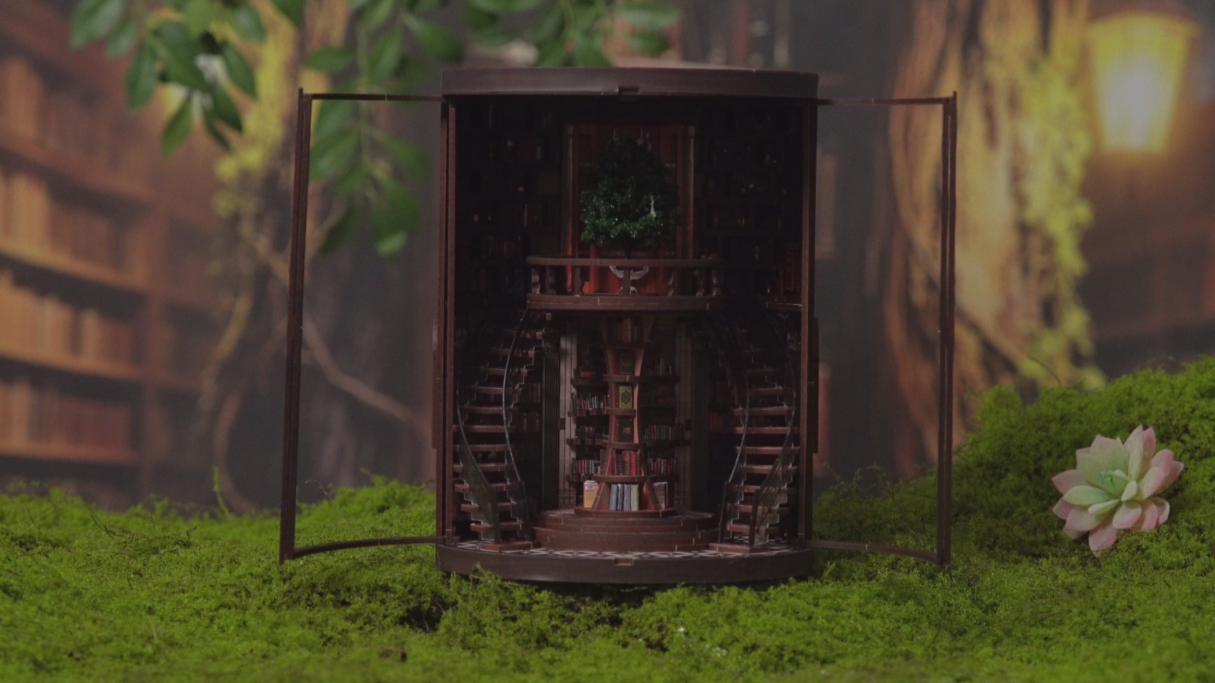 A Biblioteca Circular da Sabedoria Book Nook DIY é um convite para entrar em um universo onde o conhecimento parece infinito. Com estantes dispostas em formato circular, livros antigos e uma arquitetura envolvente, este book nook cria a sensação de estar dentro de uma biblioteca lendária, digna de histórias épicas e mundos fantásticos. A iluminação suave destaca cada detalhe do cenário, tornando a peça perfeita para transformar qualquer estante em um ponto de destaque. Além de decorativo, o modelo oferece uma experiência de montagem relaxante, ideal para quem aprecia projetos criativos e momentos de concentração.