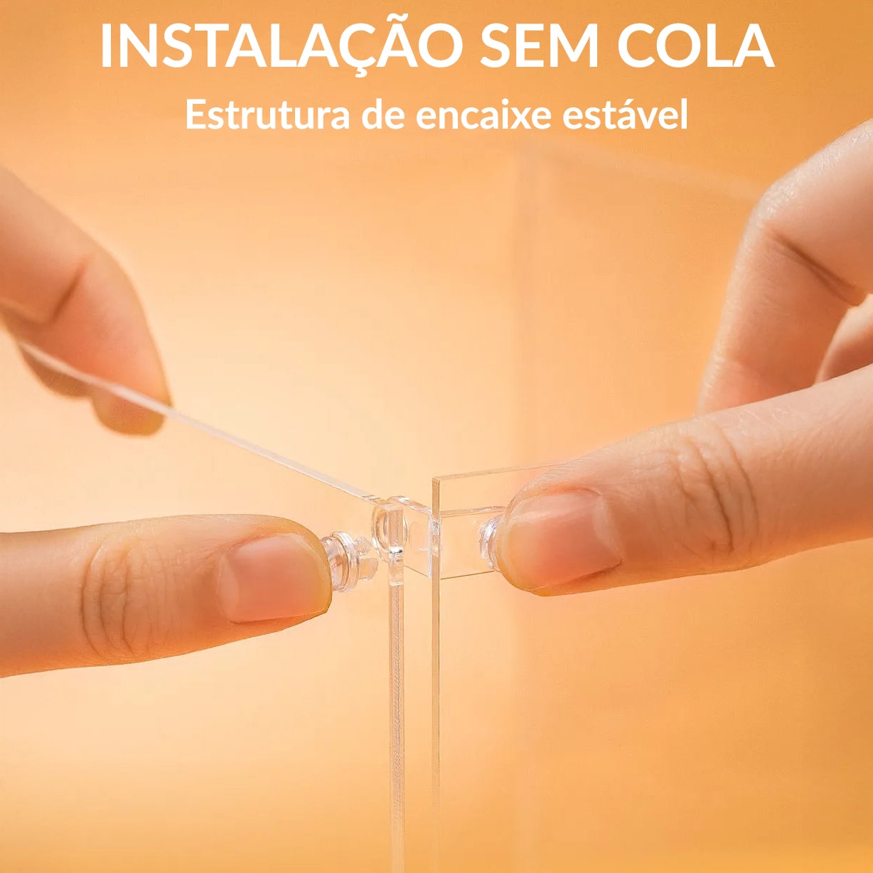 Estrutura de encaixe estável e intuitiva. Monte sua caixa expositora rapidamente, sem sujeira, sem ferramentas e pronta para proteger e valorizar suas criações.