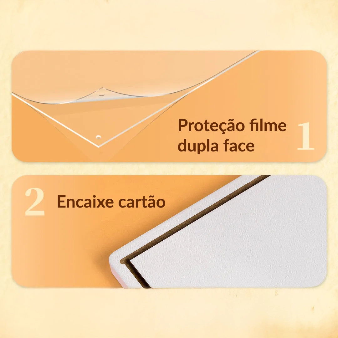 - Filme protetor em ambos os lados para evitar riscos antes da montagem