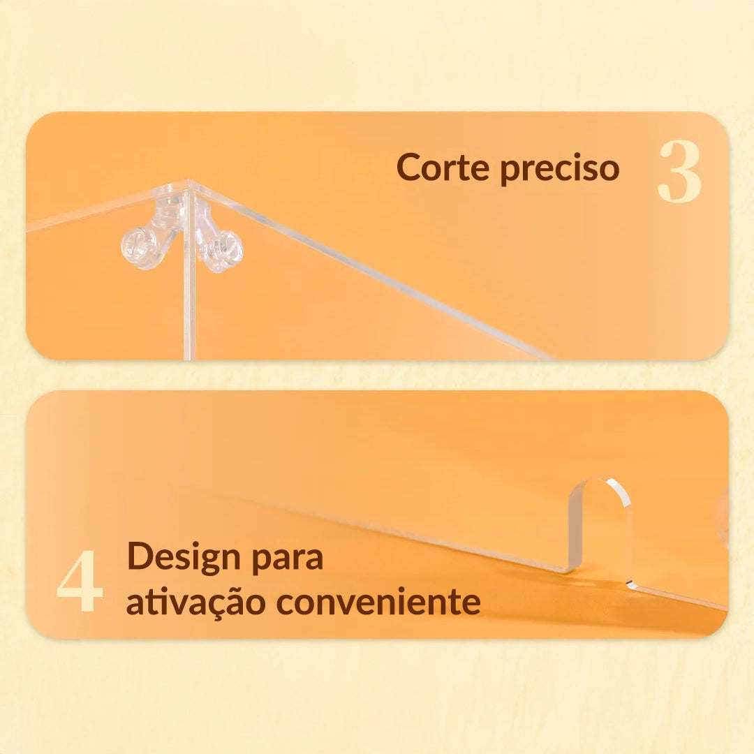 Estrutura de encaixe estável e intuitiva. Monte sua caixa expositora rapidamente, sem sujeira, sem ferramentas e pronta para proteger e valorizar suas criações.