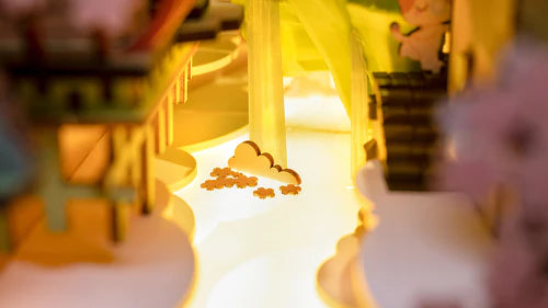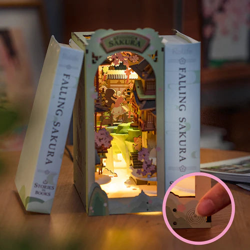 Embarque em uma viagem mágica pelos cenários de primavera do Japão com o Caminho das Flores de Cerejeira Book Nook DIY. Este kit 3D em madeira recria uma charmosa rua japonesa repleta de cerejeiras em flor, casas tradicionais e um bonde passando por uma ponte delicada. Cada detalhe, do rio iluminado ao luar suave, cria um ambiente acolhedor e encantador. A montagem é divertida e relaxante, perfeita para quem ama artesanato e quer decorar estantes com um toque único de cultura oriental.