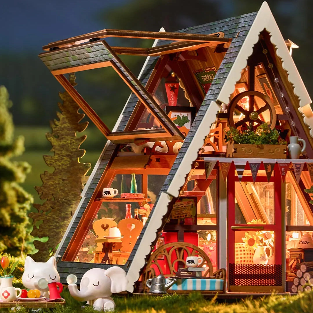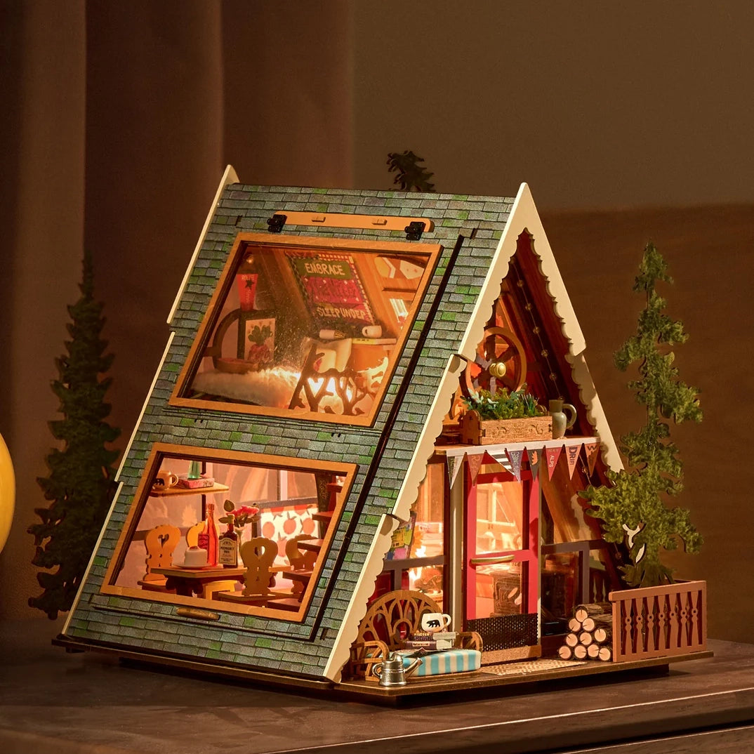 Transforme o encanto dos Alpes em um projeto artesanal com o Chalé Suíço, uma casa em miniatura DIY com design triangular moderno e atmosfera acolhedora.