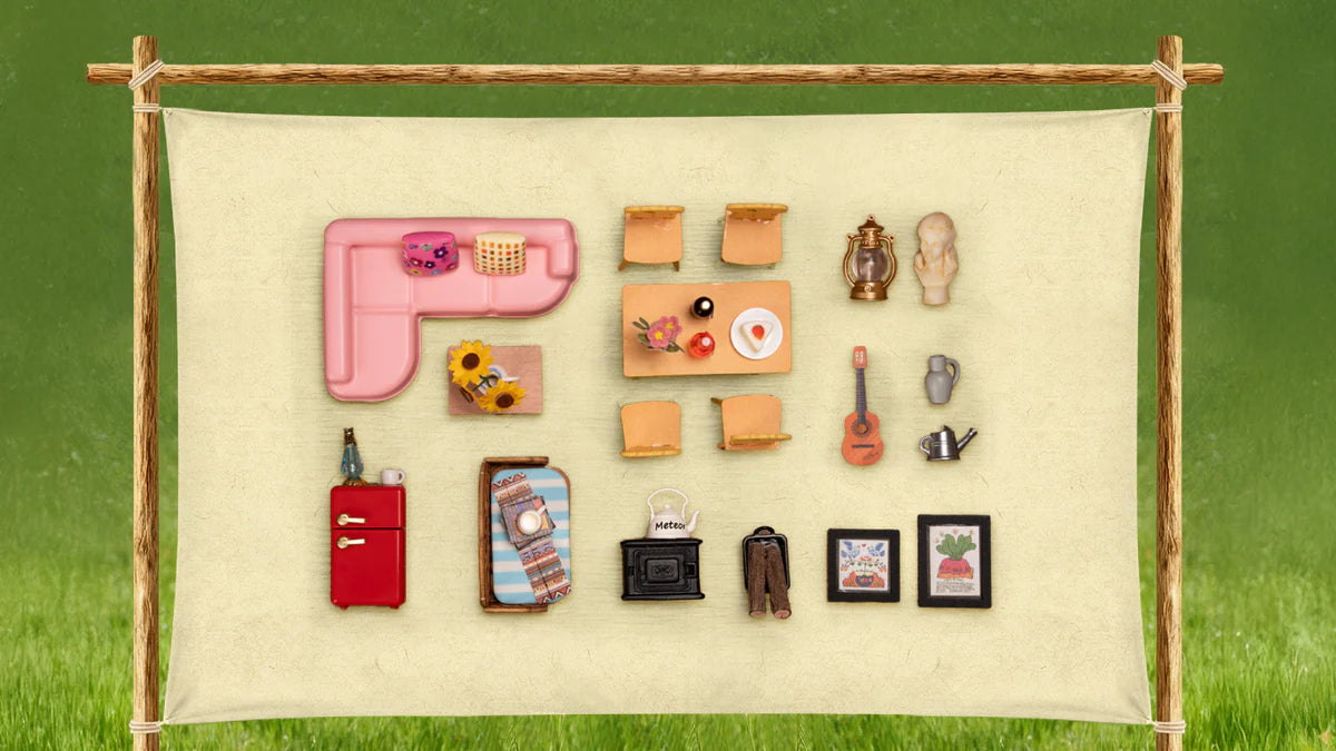 Cada detalhe foi pensado para encantar: o sofá de vime na varanda, o corrimão de madeira, a sala ensolarada, a área de jantar completa, a escada rústica e o quarto estilo sótão criam um cenário realista e envolvente. Há ainda um mini-jardim na sacada, onde ervas frescas crescem em um caixote de madeira.