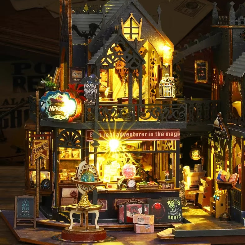 A Cidade Mágica Casa Miniatura DIY transporta você para um universo encantado, onde cada rua, torre e janela parece saída de um conto de fantasia. Inspirada em cidades mágicas e mundos imaginários, essa miniatura combina arquitetura detalhada, iluminação suave e elementos místicos que criam uma atmosfera única e envolvente. É um projeto ideal para quem ama fantasia, miniaturas ricas em detalhes e decoração com personalidade.