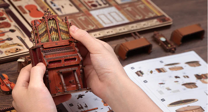 - Materiais: madeira, papel, tecido e plástico