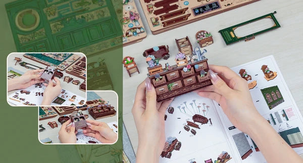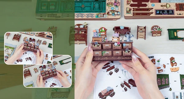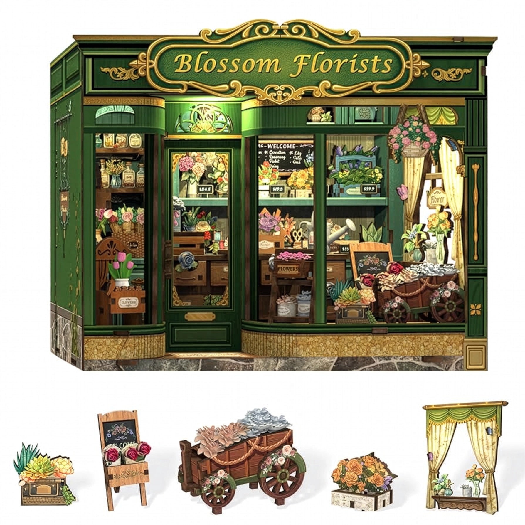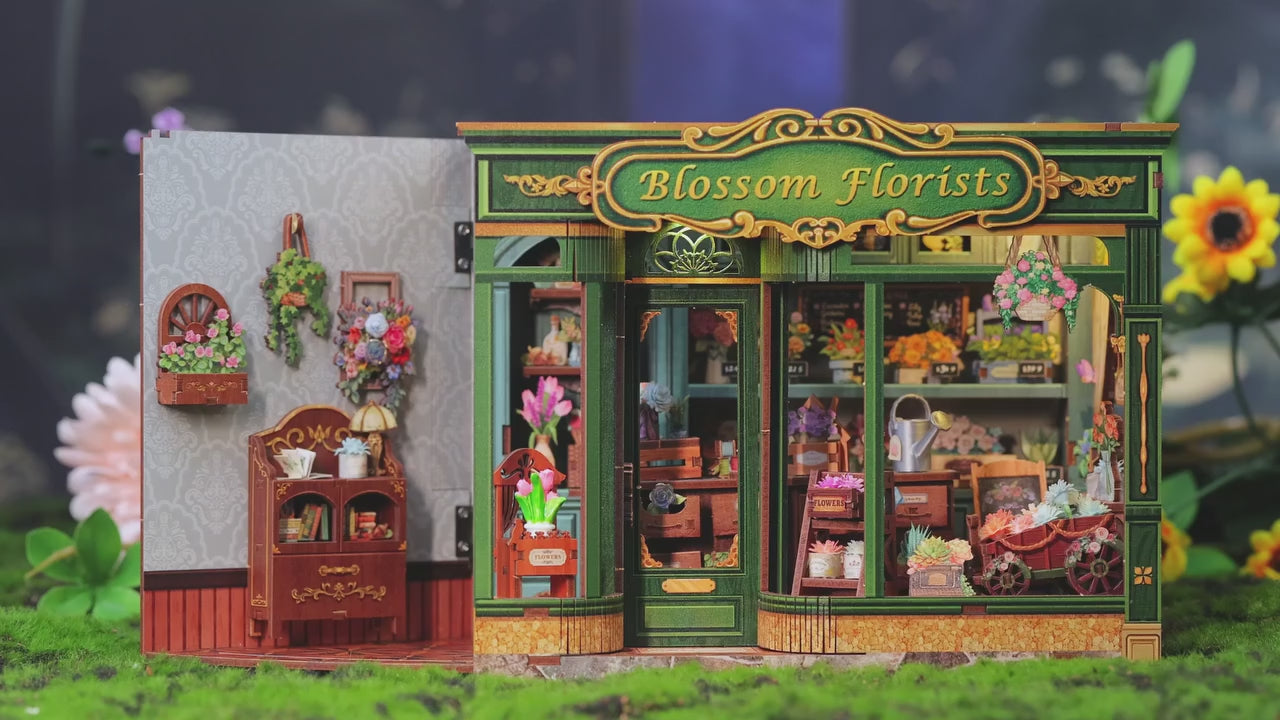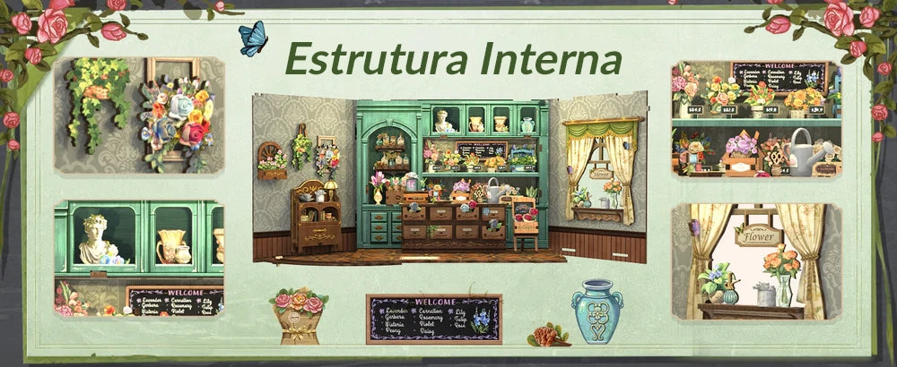 Aninhada em uma rua charmosa, a Floricultura Encantada conquista corações com sua delicadeza e o perfume das flores recém-colhidas. Inspirada nas antigas lojas de bairro, cada detalhe transmite acolhimento, dos carrinhos retrô repletos de arranjos às prateleiras cheias de vasos e plantas exóticas. As janelas adornadas com cortinas leves deixam a luz suave entrar, iluminando um espaço onde cada flor conta uma história. Este kit faça você mesmo em miniatura captura toda a beleza e encanto de uma floricultura tradicional.