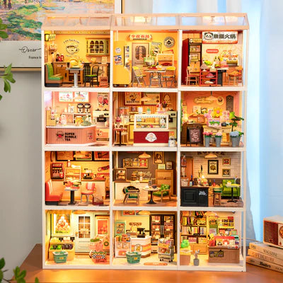 Com iluminação suave e letreiros temáticos, o ambiente transmite perfeitamente o clima das noites agitadas da Ásia, um convite irresistível para montar, admirar e colecionar.