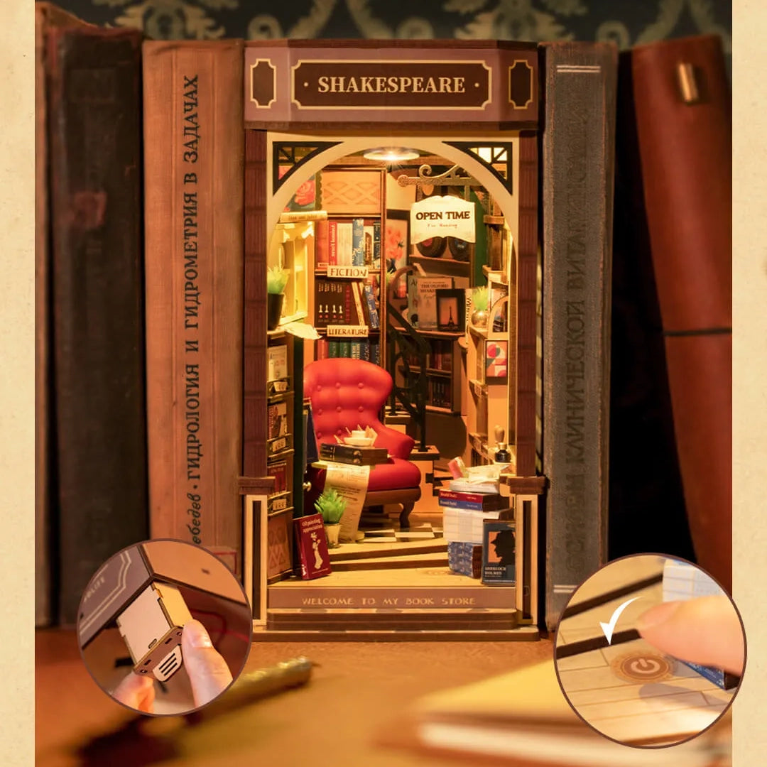 No coração da cidade existe uma livraria encantadora e retrô chamada Livraria Shakespeare. Esse lugar mágico atrai todos os tipos de visitantes, mas é o refúgio favorito do velho Tom, um cliente fiel que passou incontáveis momentos felizes entre suas estantes. Sempre que entra na livraria, Tom é atraído pela antiga e colorida vitrine. Ele gosta de se sentar no grande sofá vermelho de veludo no canto, folheando livros e se perdendo em histórias clássicas. No aconchegante canto de leitura, rolos e manuscritos literários decoram o espaço. Quando o cansaço chega, ele prepara uma xícara de café aromático, observa o verde das plantas e tira um breve cochilo. Entre as prateleiras, cuidadosamente etiquetadas, Tom encontra de tudo: romances, poesia, mistérios e raridades. Em um pequeno armário de madeira, ele guarda e descobre tesouros literários esquecidos. Para Tom, esta não é apenas uma livraria… é um túnel do tempo que o transporta de volta aos dias mais inspiradores de sua vida.