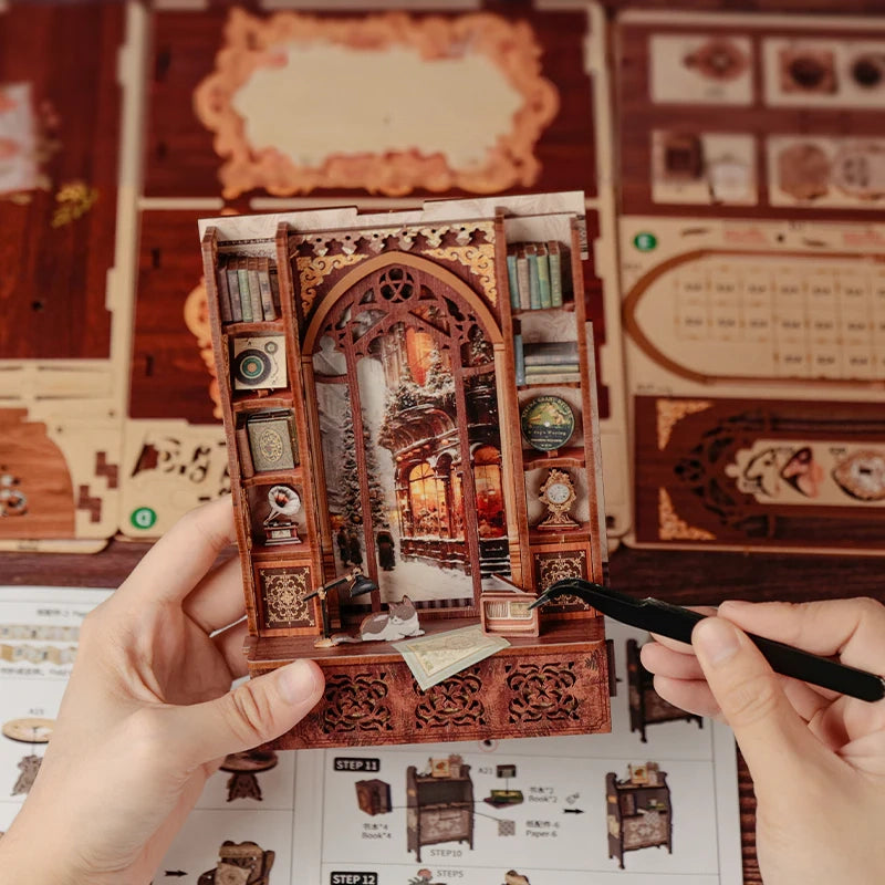 Entre no mundo mágico das livrarias clássicas com o Memórias de uma Livraria Book Nook DIY. Este kit cria uma cena nostálgica de uma livraria vintage, repleta de livros antigos, detalhes ornamentados e um ambiente acolhedor que parece parar o tempo. Ao montar cada peça, você constrói um espaço encantador com áreas de leitura, janelas detalhadas e prateleiras cheias de história. É perfeito para quem ama literatura, decoração criativa e projetos DIY relaxantes.