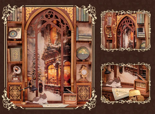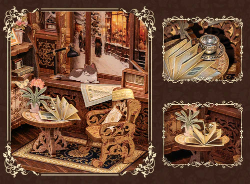 Escondida em uma esquina tranquila da cidade, esta livraria misteriosa parece comum do lado de fora, mas guarda um charme vintage por dentro. As estantes estão repletas de livros antigos e clássicos que escondem histórias fascinantes. Pela janela, um cenário nevado convida a sonhar. Talvez escritores tenham deixado aqui suas primeiras palavras, romances tenham nascido entre essas paredes ou leitores anônimos tenham encontrado conforto e inspiração. Neste espaço encantado, o tempo desacelera e se torna mais belo, trazendo paz e sensações únicas.