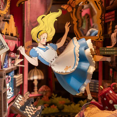 Embarque em uma aventura criativa com o Mergulho no País das Maravilhas Book Nook DIY. Inspirado no universo mágico de Alice, este encantador cenário em miniatura transforma qualquer estante em um portal para um mundo de fantasia. Cada peça pré-cortada é projetada para encaixar com precisão, revelando detalhes incríveis como móveis retrô, cenas icônicas do chá maluco e elementos que parecem desafiar a gravidade. Ideal para quem ama montar, decorar e se perder em histórias encantadas.