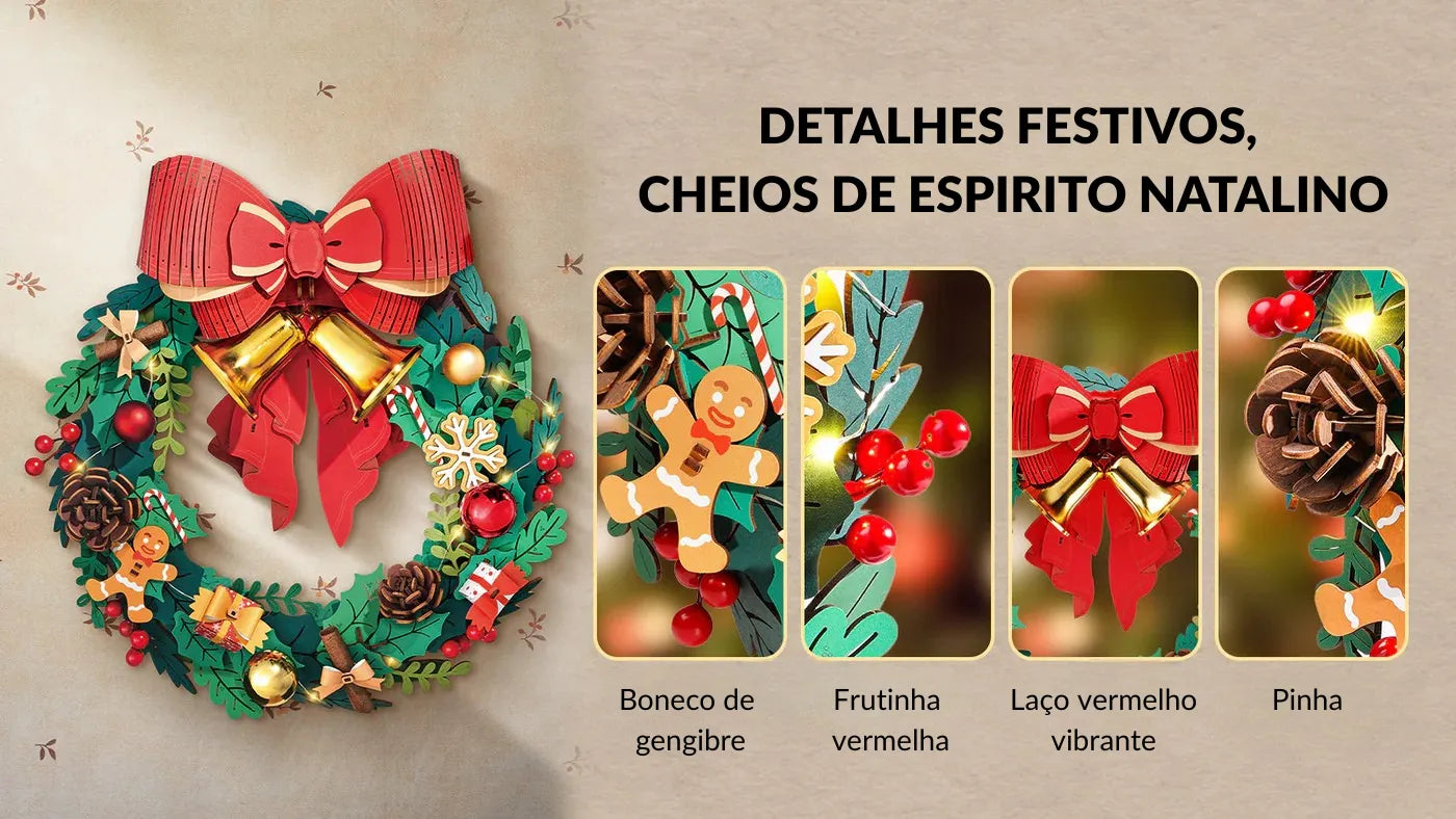 Monte a sua própria Guirlanda Festiva de Natal, um encantador quebra-cabeça 3D em madeira que celebra o espírito natalino em cada detalhe!