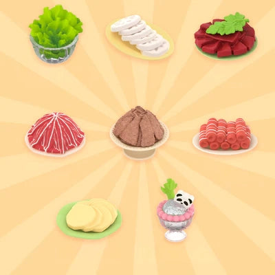Prepare-se para uma deliciosa refeição asiática completa, com caldos fumegantes, vegetais frescos, carnes finas, molhos, sobremesas e bebidas! O Restaurante Panda Hot Pot é um convite para viver uma experiência culinária criativa, cheia de detalhes realistas e muito charme. Na mesa, os ingredientes estão prontos para o banquete: carnes cortadas em fatias finas, cogumelos, repolho fresco e muito mais. Na estação de molhos, há pastas e temperos como alho, molho de ostras e cebolinha picada. E, claro, nada melhor do que finalizar com uma bebida gelada retirada direto da mini geladeira, com leite, refrigerantes e sucos engarrafados. Monte, decore e saboreie (com os olhos) essa deliciosa cena que aquece o coração!
