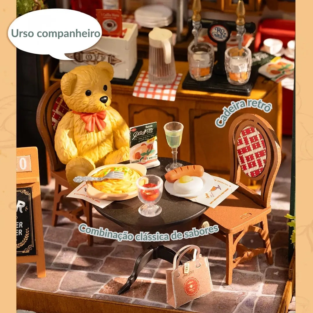 Entre no clima acolhedor do Tipsy Bistrô, um charmoso restaurante em miniatura no estilo europeu que convida você a montar cada detalhe com as próprias mãos.