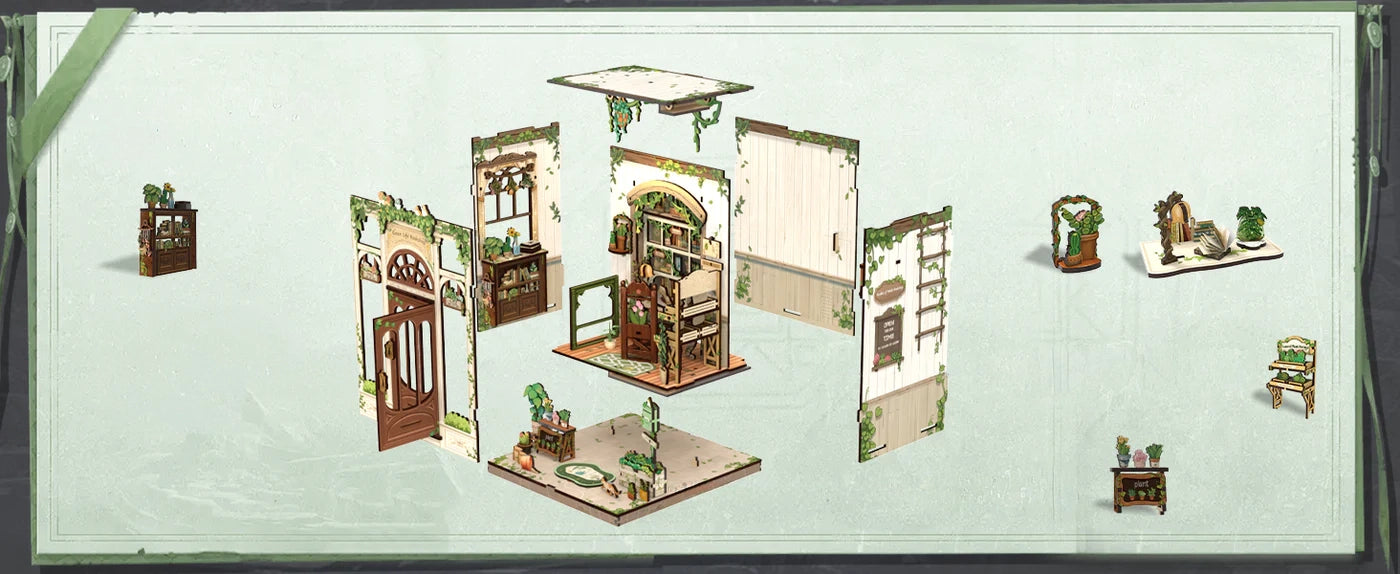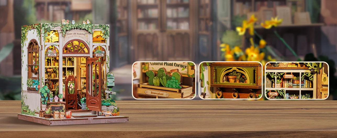 A Vida Verde Livraria Casa Miniatura DIY é um kit de montagem delicado e inspirador que une o amor pelos livros com a tranquilidade da natureza. Com uma fachada charmosa cercada por plantas, estantes repletas de livros e detalhes botânicos cuidadosamente trabalhados, esta mini livraria cria um refúgio acolhedor em miniatura. Ideal para quem busca um projeto criativo, relaxante e com forte apelo decorativo, ela transforma qualquer ambiente em um canto verde cheio de personalidade.